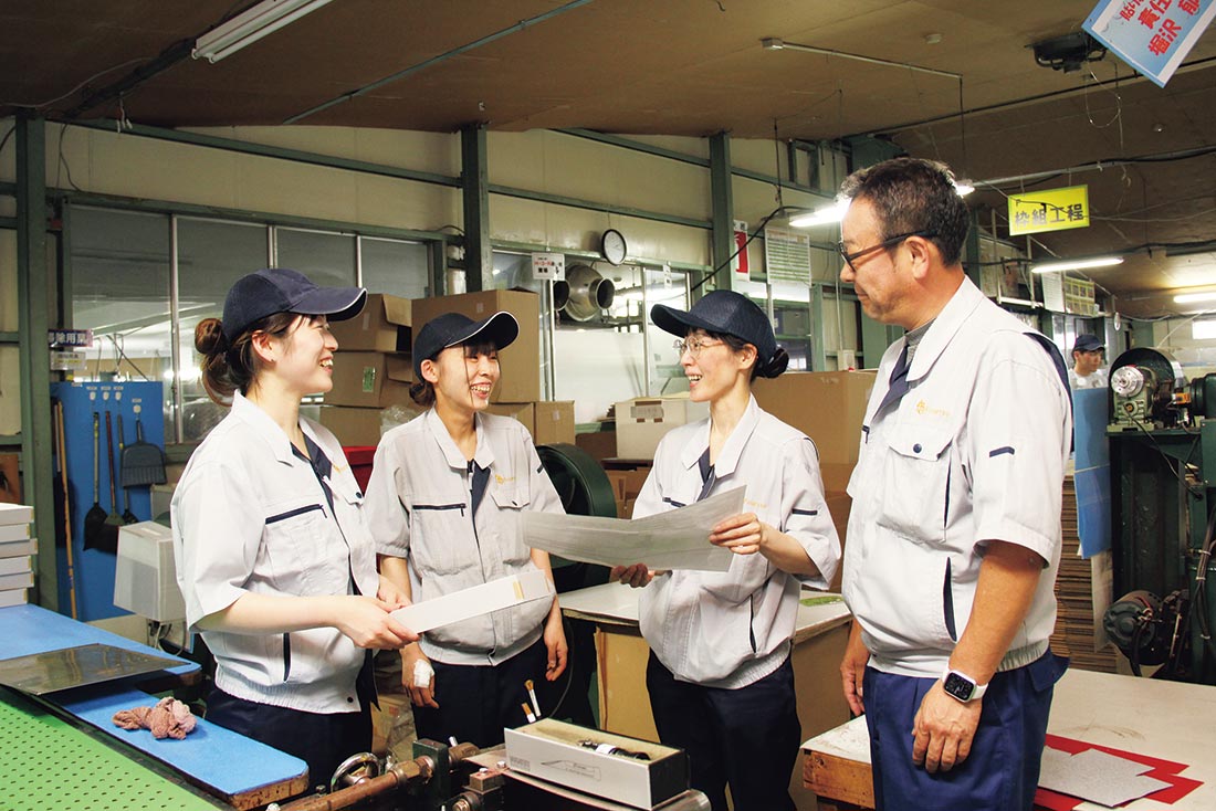 | 全体朝礼 社長・部門長からの一言や全体の作業量・新規や変更の確認を行います | |