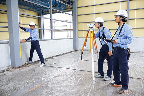 当社は総合建設業を営んでいます。土木工事では道路や堤防を造り、建築工事では工場や商業施設から住宅まで多くの建物を建てています。