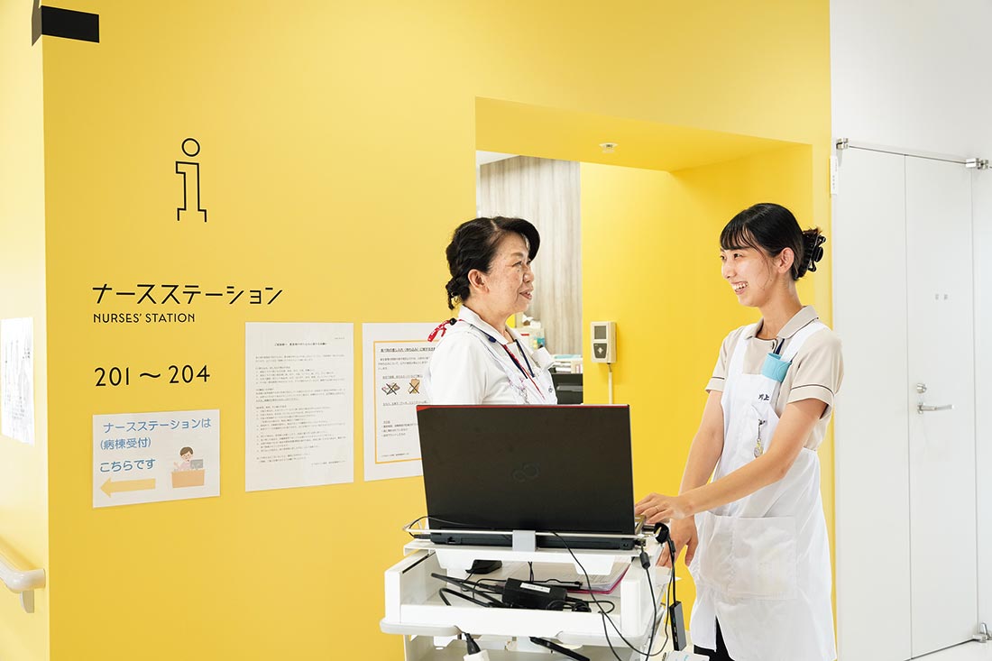 また、近年では看護の職場でもDⅩ化が進んでおり、当院でも長期療養型の病院の中でもいち早く電子カルテを導入し、看護サービスの質的向上及び職員の働く環境整備を行っています。