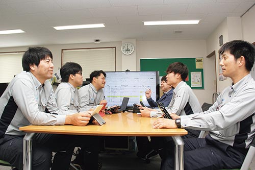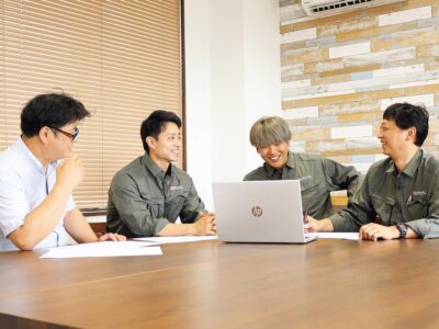| 9:00 | 現場作業開始前の打合せ 現場へ出る前に、事務所でその日作業する内容や方法・危険のポイントなどについて作業員全員で打ち合わせをします。 |
