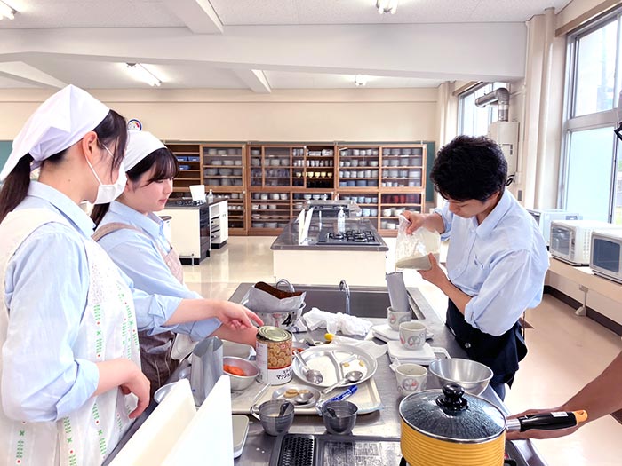 小千谷西高等学校3年生の調理の授業を選択している生徒15名がカレー2班、スープ2班の4チームに分かれてスタート!