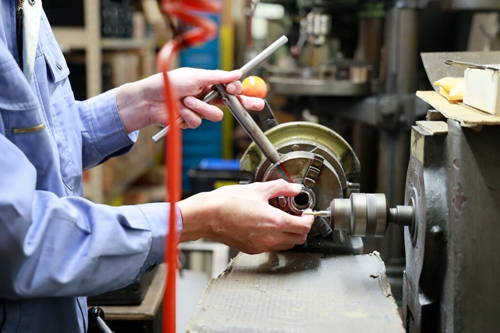 工場で使うロボットや機械の“動く部分”にあたる金属パーツや、エンジンの内部で必要となる細かな部品などを製造しています。金属を削ったり磨いたりして形をつくり、わずかな誤差も許されない精密な部品を数千種類にわたり作っています。