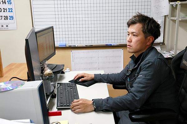 工事が円滑に進むよう、各現場の作業員配置や工程管理、資材の発注・段取りを担当しています。現場では作業にも入りながら指示を出し、作業内容や周囲の状況に応じた安全確認を徹底。ケガのない現場づくりを第一に、営業や見積もり業務も行い、県内各地の現場を幅広く支えています。また冬季間は道路除雪・民間企業の駐車場除雪なども行います。